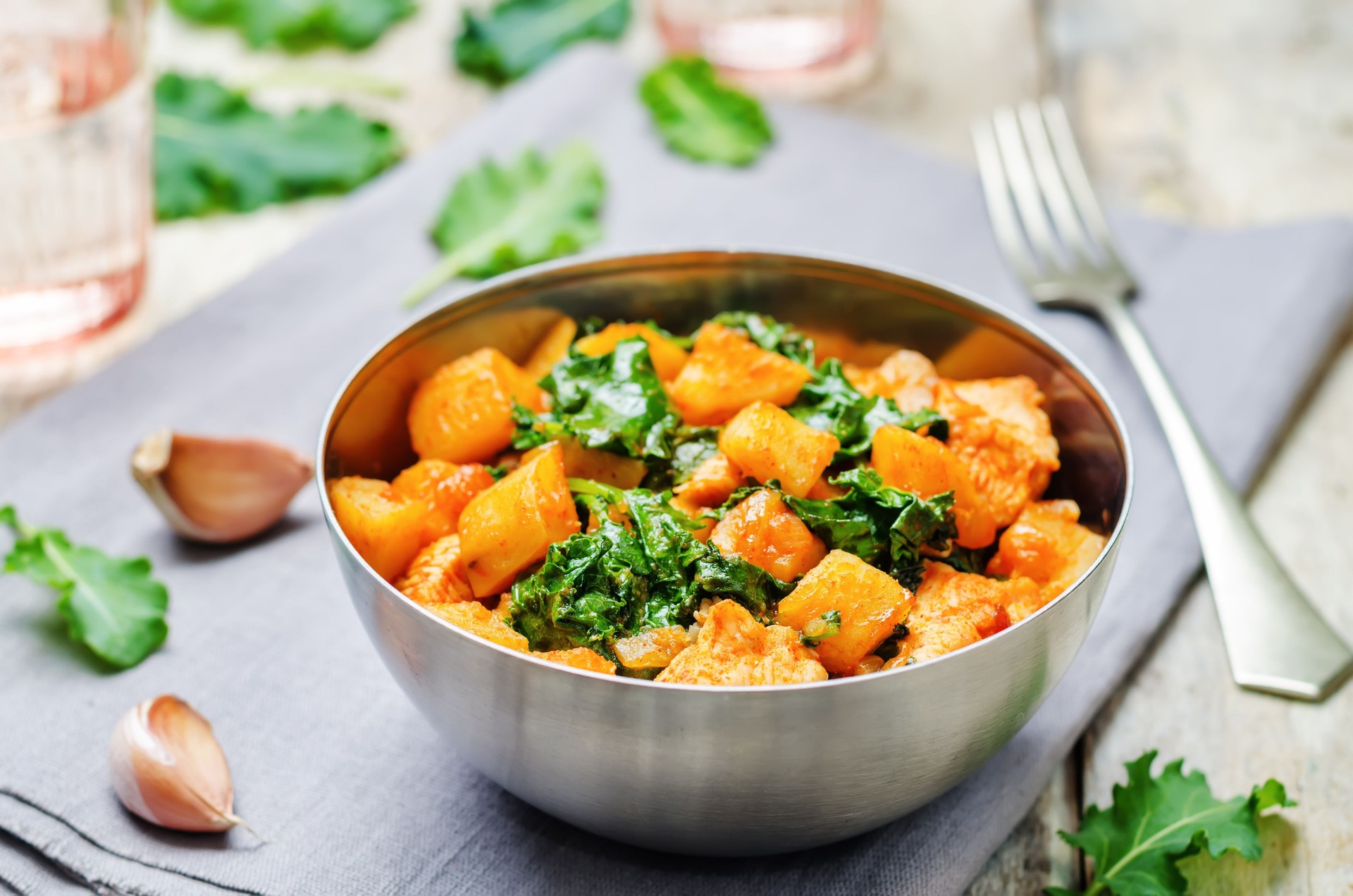 Roasted sweet potatoes and kale mixed with chickpeas and tahini sauce. Ingredients: 1 medium sweet potato (cubed and roasted) 2 cups chopped kale (stems removed) ½ cup cooked quinoa ¼ avocado (sliced) 2 tablespoons pumpkin seeds Dressing: 2 tablespoons olive oil, 1 tablespoon apple cider vinegar, 1 teaspoon Dijon mustard. Directions: Roast sweet potato cubes in the oven at 400°F (200°C) for 20 minutes or until tender. Massage kale with olive oil to soften. Combine kale, roasted sweet potato, quinoa, and avocado in a bowl. Drizzle with the dressing and sprinkle with pumpkin seeds before serving.
